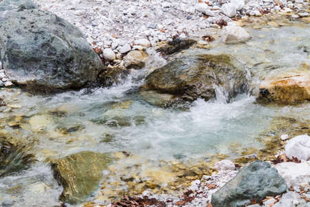 Close up photo of the turquoise mountain river, natural background
