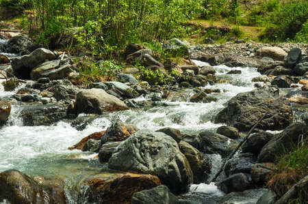 Beautiful view of mountain river in summer,Altai Mountains,Russia. Cascade mountain river.