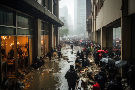 Urban Chaos A City Street Engulfed by a Massive Flood