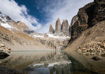 Base Las Torres viewpoint, Torres del Paine, Chile. Chilean Patagonia landscape.