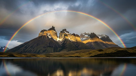 Rainbow over the Torres del Paine National Park, Chile.