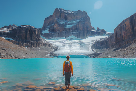 mountaineering in front of lake with mountain landscape professional photography