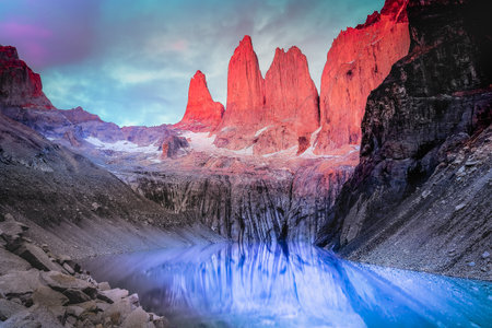 Fantastic sunset in Torres del Paine National Park, Chile