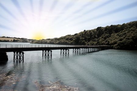 bridge over the river, photo as a background, digital image