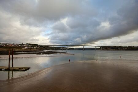 View of the scenic tourist town of Instow in north Devon. Viewed from further down the Torridge estuary, at high tide.