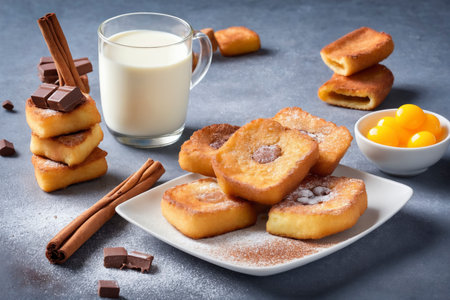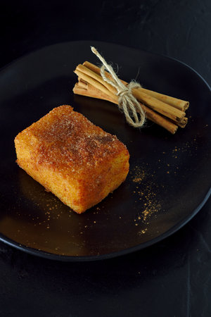 fried milk with cinnamon, typical and traditional dessert of Spanish cuisine