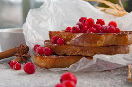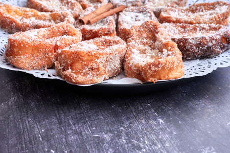 Typical Spanish food at the Easter festivities Torrijas whit sugar.