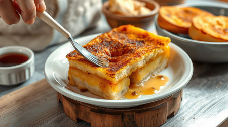 Golden French Toast Delights: Warm and Delicious on a Wooden Plate