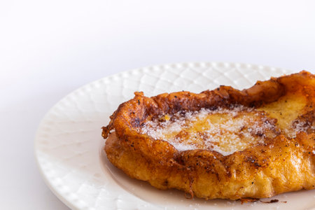 Torrijas on white background. The torrijas or toast is a typical sweet of the celebrations of Lent and Holy Week in Spain