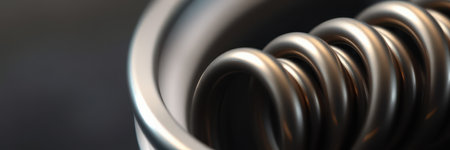 This stunning close-up image showcases a metal spring with a reflective surface and smooth curves, perfect for abstract designs or industrial-themed projects.