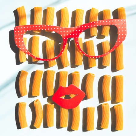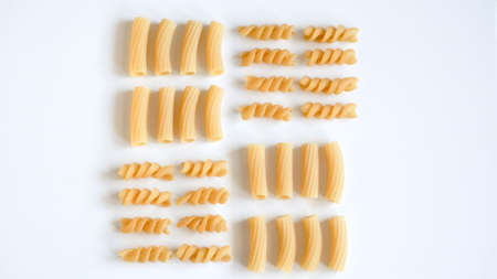 set of rigatoni, italian typical pasta on white bacground, fashion minimal style