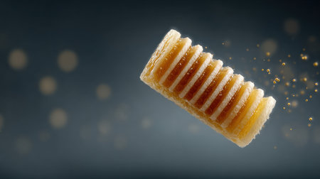 Rigatonis arranged in a row with orange background and soft light