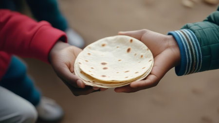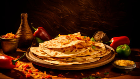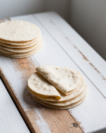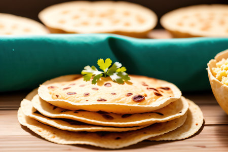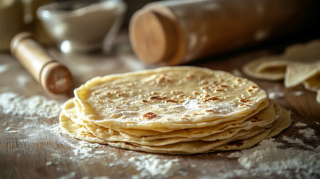 AI Generated. Freshly baked tortillas on a wooden surface