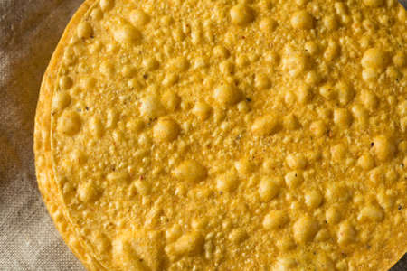 Close up of yellow corn taco shell. texture.