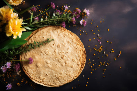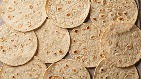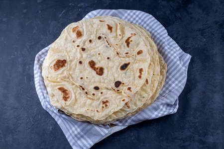 Traditional Indian chapati cakes. Top view, copy space. Healthy, fiber-rich food