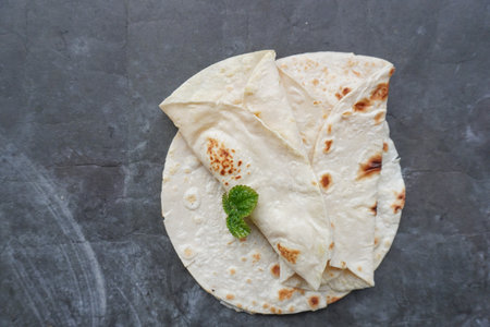 Traditional indian flatbread chapati on dark background. Top view
