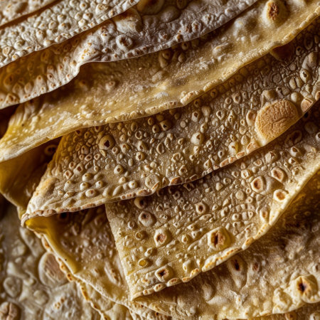 close-up of a neatly stacked pile of fresh tortillas, created with generative ai
