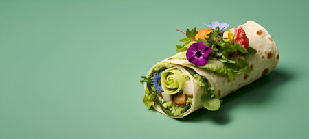 Wrap with flowers. The concept of vegan, vegetarian and healthy food. Generative AI.