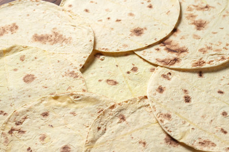 Flat bread tortillas pile on the table