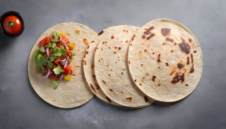 Grilled Mexican tortilla on a concrete background. View from above.