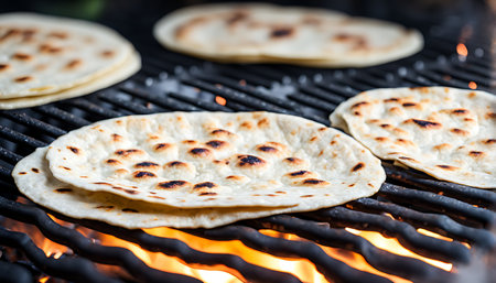 handmade tortillas being flipped with tongs on a griddle, created with generative ai