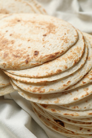 Flat bread tortillas pile on the table