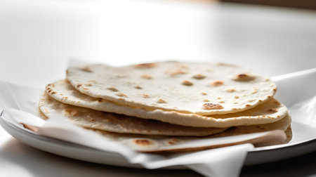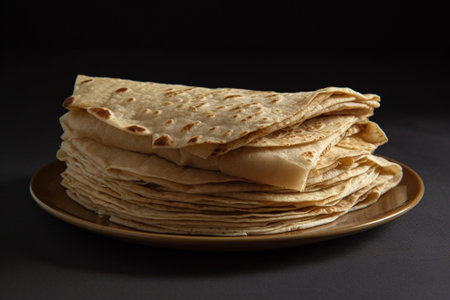 close-up of a neatly stacked pile of fresh tortillas, created with generative ai