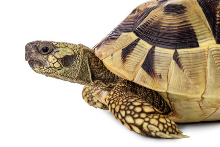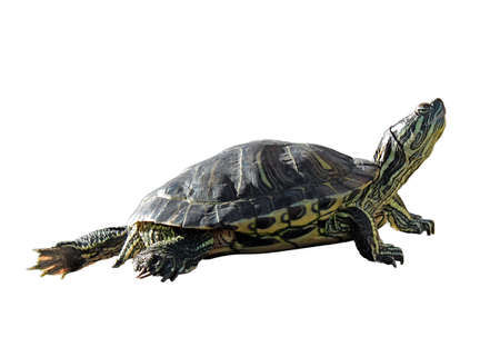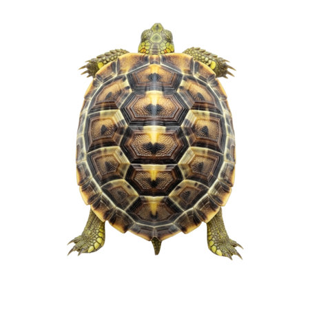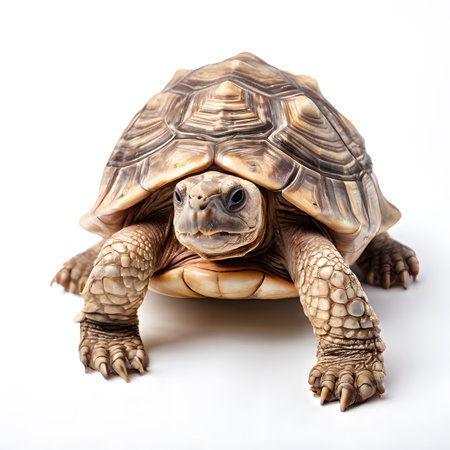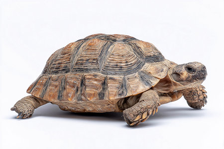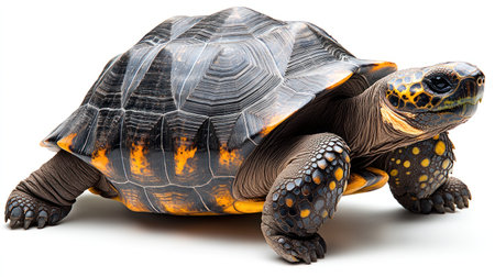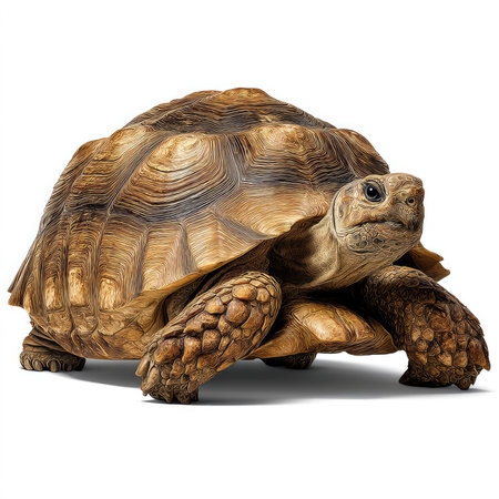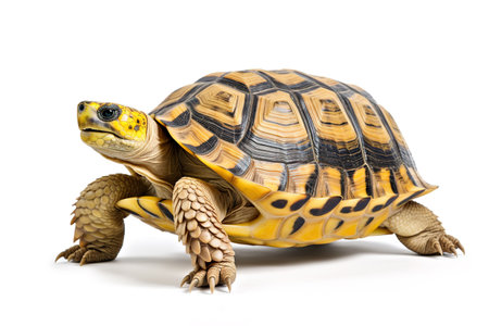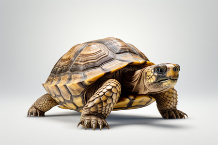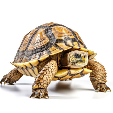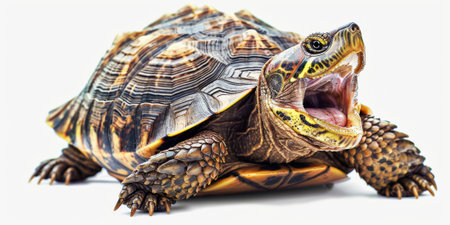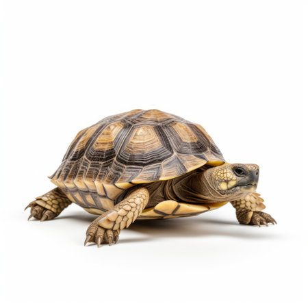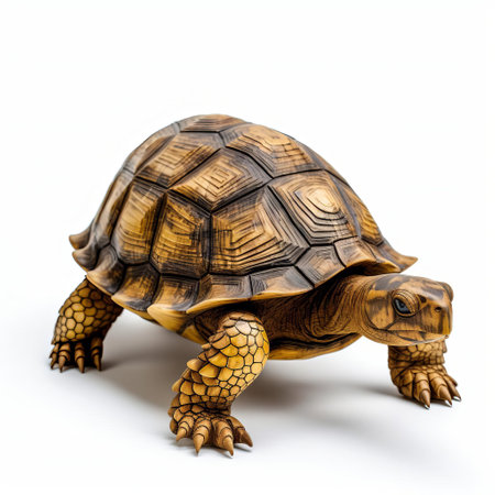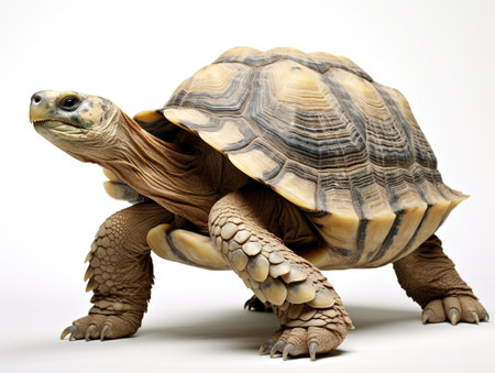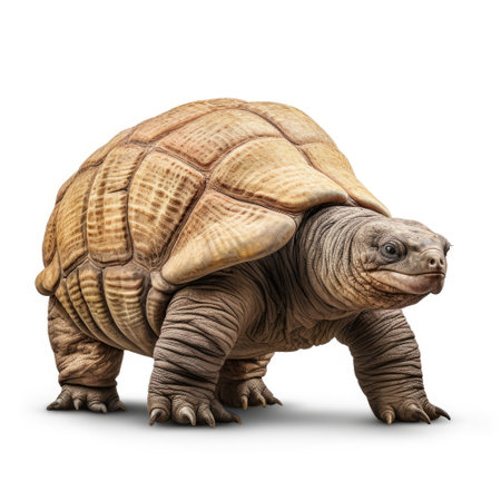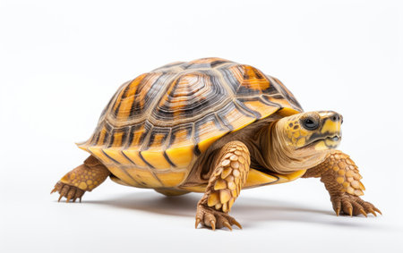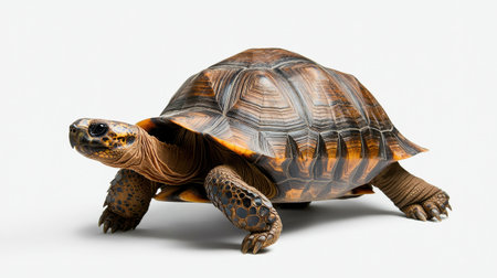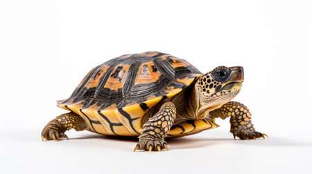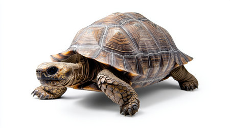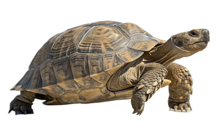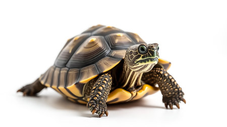 High-quality image of a turtle on a white background, highlighting its natural textures, detailed shell, and realistic features. Ideal for educational content, nature illustrations, and creative
