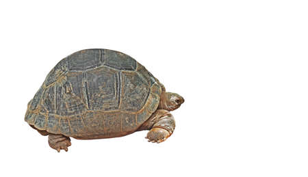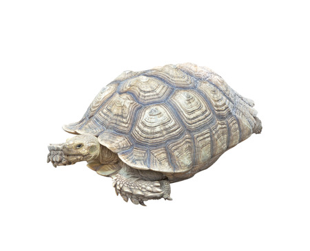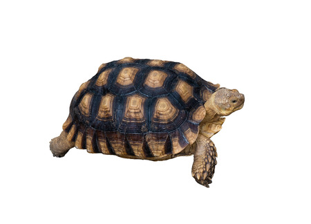Brown African Giant Tortoise turtle isolated on white backgound.