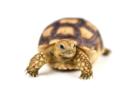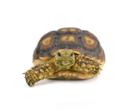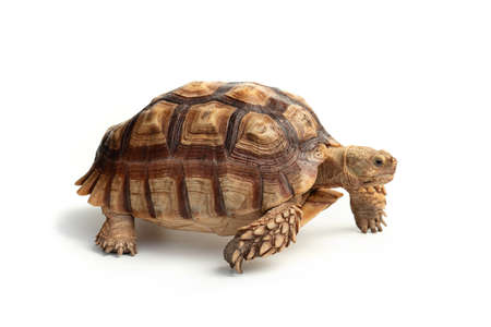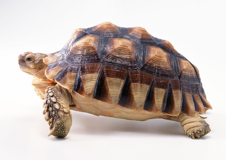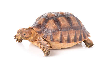 African species of tortoise, turtle (Centrochelys sulcata) isolated on the white background.