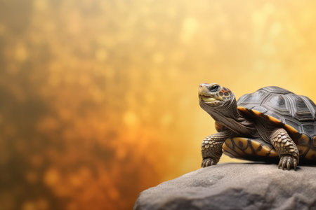 A stunning close-up of a turtle resting on a stone surface, showcasing intricate details of its textured shell in a serene natural environment.