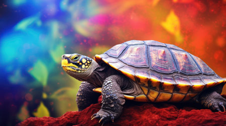 Colorful artistic representation of a turtle, showcasing intricate patterns on shell and skin