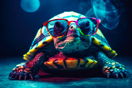 Meet a wise and elderly turtle sporting glasses, navigating with difficulty. Creating using generative AI tools