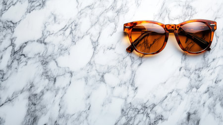 A stunning pair of stylish sunglasses rests elegantly on a classic marble surface. This image captures the essence of summer fashion and lifestyle, ideal for marketing, blogs, or design projects focusing on elegance and modern aesthetics.