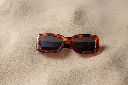 tortoiseshell sunglasses on beach sand