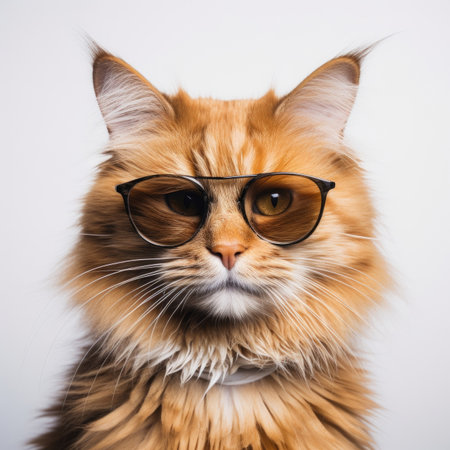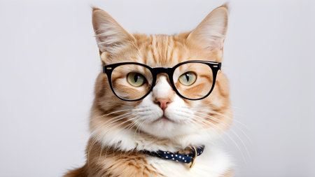 Portrait of a red cat wearing glasses on a white background.. generated by AI.