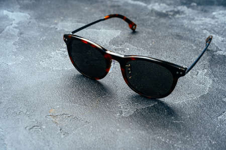 Dark male sunglasses on grey concrete surface