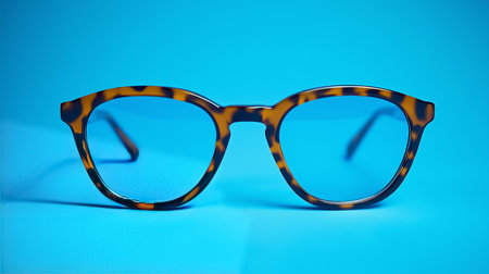 Stylish tortoiseshell glasses displayed against a vibrant blue background for a modern look