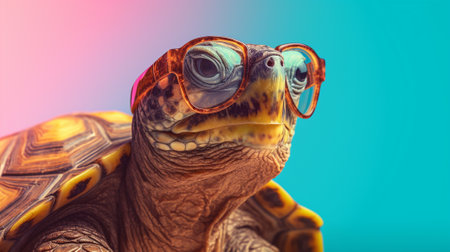 a turtle sporting trendy sunglasses against a delightful pastel background. The adorable reptile embrace a carefree and fashionable attitude, inviting viewers into a world of fun and relaxation.