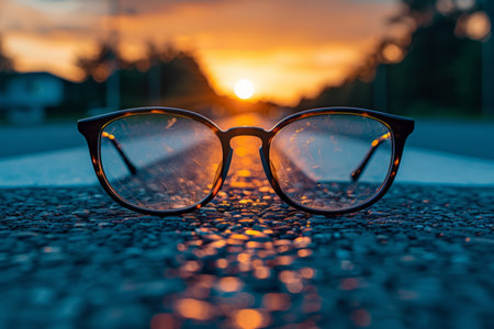 An AI generated illustration of A pair of glasses on the road