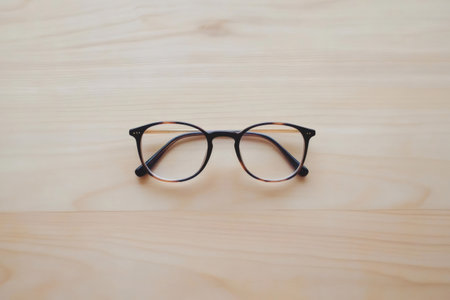 Tortoiseshell reading glasses lying open on a clean, bright wooden surface, symbolizing vision, knowledge, education, and study