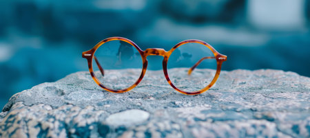 Chic and fashionable eyeglasses elegantly placed on the lively city street pavement