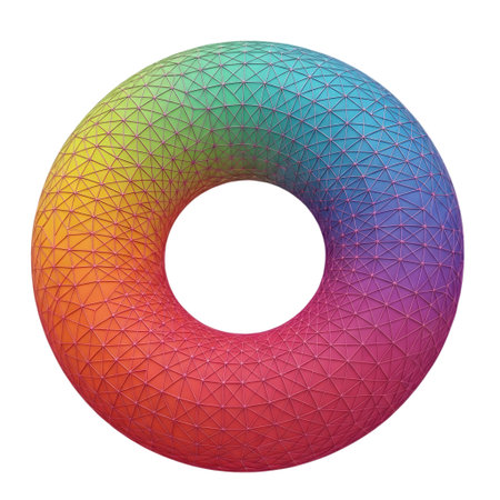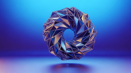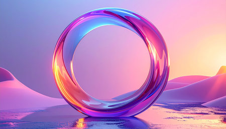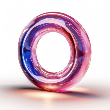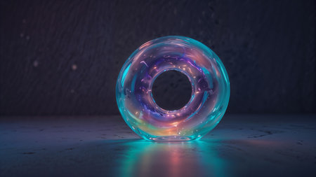A vibrant 3D donut shape floats above a digital background, creating a modern abstract artwork ideal for technology and creative themes.