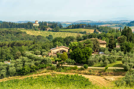 Beautiful view of Tuscany landscape and landmarks. Summer in Italy