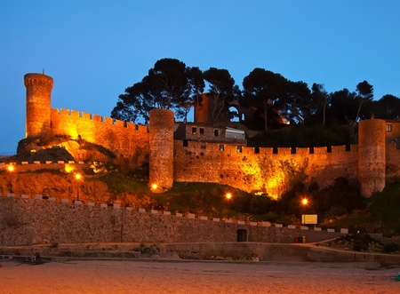 Night landscape of Tossa de Mar, medieval village of Costa Brava. Spain.