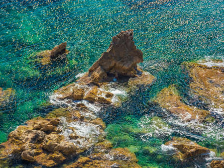 Aerial views of the rocks in the sea on a sunny day in the Costa Brava in Spain