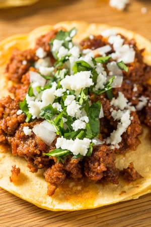 Homemade Mexican Chorizo Tacos with Onion and Cilantro