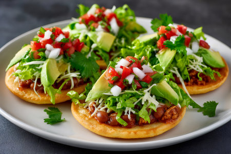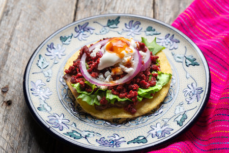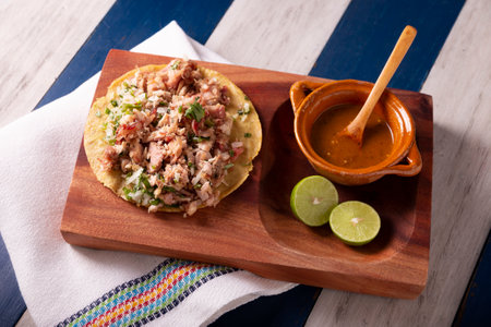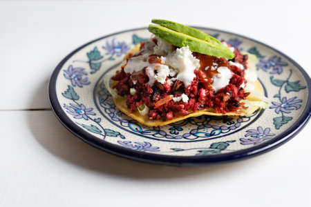 classic mexican food dish with sopes with sauces