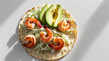 AI Generated. Grilled Shrimp Taco with Avocado and Cabbage