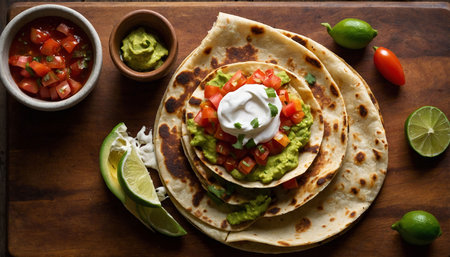 Mexican quesadilla with guacamole, tomatoes and avocado